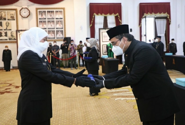 Adakabar.com. Surabaya- Gubernur Jawa Timur Khofifah Indar Parawansa mengambil sumpah jabatan dan melantik 17 Pejabat Pimpinan Tinggi Pratama atau Eselon II di Lingkungan Pemerintah Provinsi Jawa Timur. Pelantikan dengan undangan terbatas ini digelar di Gedung Negara Grahadi Surabaya, Rabu (15/9) dan menerapkan protokol kesehatan secara ketat.